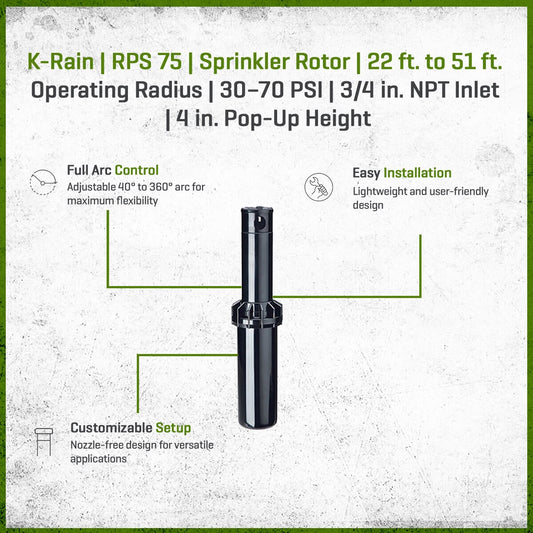 K-Rain Super Pro Series 5 in. Pop-Up Rotor 28 ft. - 49 ft. 40 Degree - 360 Degree w/Anti-Drain Shut Off