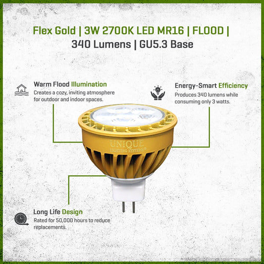 FLEX GOLD LED, 3 WATT, MR16, FLOOD, 2700K