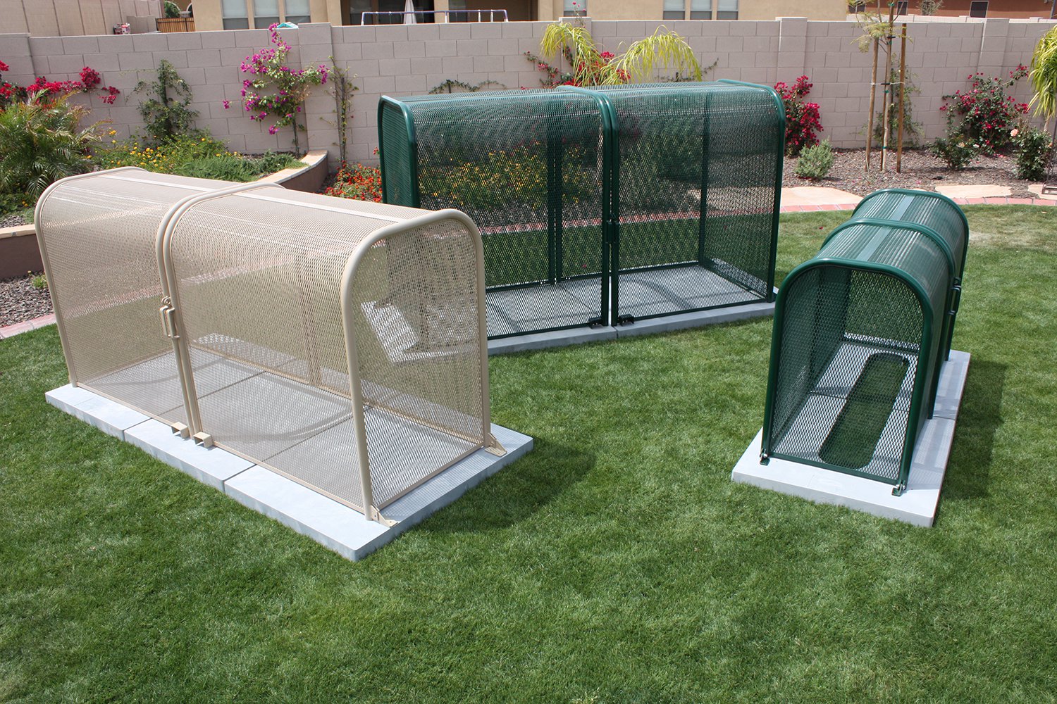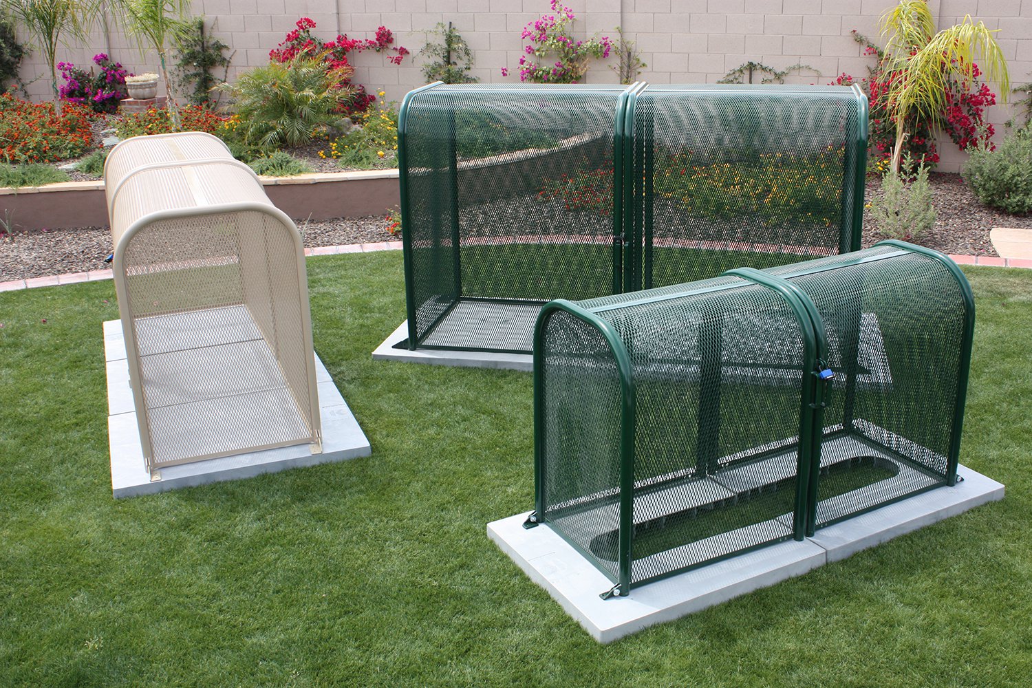 All of our large enclosures feature our signature rounded design which provides both superior strength and safety over square cages, without any sharp corners. These enclosures are all Clam Shell styled, consisting of two pieces which independently hinge back allowing full access to the assembly. The hinges also help mitigate the cage’s weight and with the help of built in handles, it can be opened with only one person.