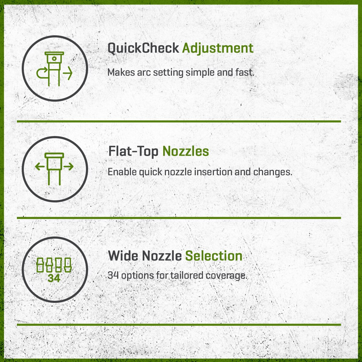 Built with durability and versatility in mind, the PGP Ultra provides 34 nozzle options, wide pressure adaptability, and a factory-installed drain check valve for up to 10 ft. of elevation change. Designed for reclaimed water systems, it integrates high performance with sustainable practices, ensuring water savings without compromising coverage.