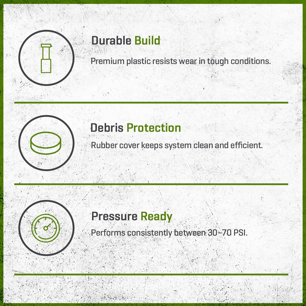 With an adjustable arc ranging from 40° to 360°, the RPS Gear Drive Rotor gives you total control over spray patterns to match the unique needs of your landscape. The built-in check valve prevents unwanted drainage, conserving water while maintaining pressure efficiency. Designed to operate within a wide range of 30–70 PSI and 0.75–8.2 GPM, this rotor combines durability with flexibility for professional-grade irrigation results.