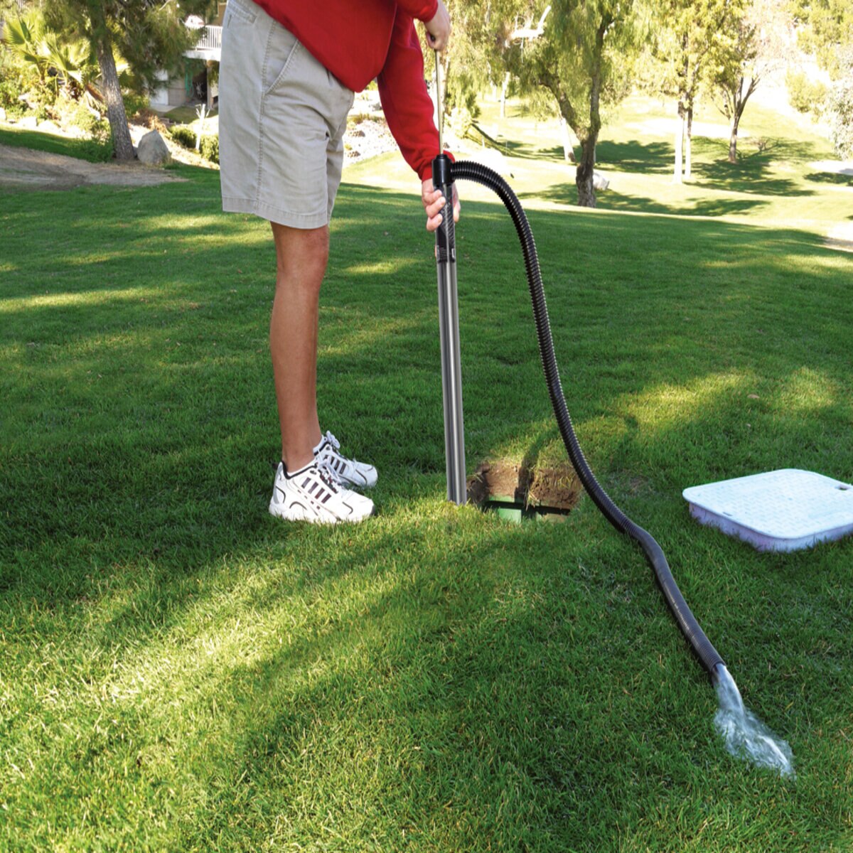 Whether you need to remove water from sprinklers and valves boxes or displace gallons of standing water in the field, the Underhill Gulp series of water removal hand pumps has the right tool for the job. Ergonomic handles provide a comfortable and secure grip, and super smooth pumping action maximizes chamber capacity to yield surprisingly high flow rates for their size. The innovative push-button cleaning system allows for quick flushing of water/debris when the job is complete.