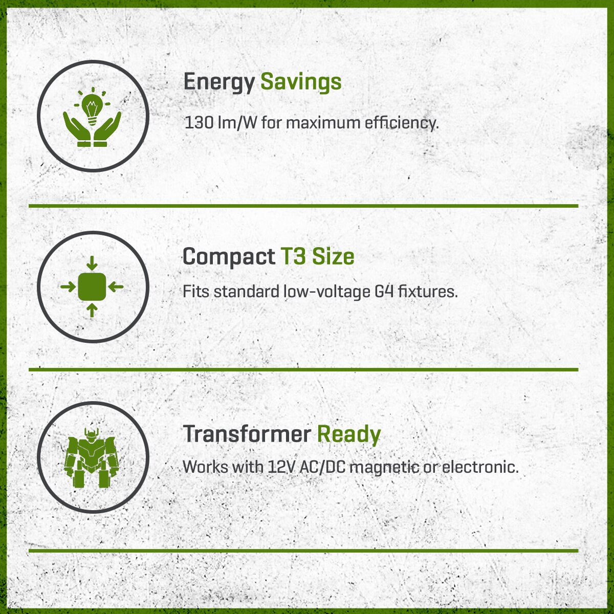 Enjoy warm, efficient lighting with the FLEX GOLD LED, 4 Watt, T3 2700K. Engineered to deliver superior brightness while consuming minimal energy, this lamp creates an inviting ambiance ideal for pathways, walkways, and architectural wall washing. Its 2700K warm white color temperature offers natural, welcoming illumination that enhances both residential and commercial outdoor environments. Built with a compact T3 tubular design and G4 base, it ensures seamless compatibility with low-voltage fixtures while offering reliability and long service life. Rated at 50,000 hours, this lamp significantly reduces replacement needs, making it a cost-effective and sustainable lighting solution.