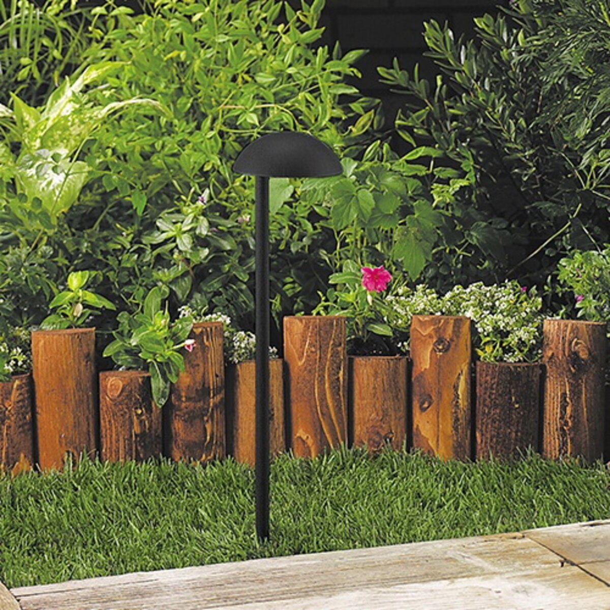 For illumination on areas or pathways, select the Vista Path Light. This path light features a high-impact, clear polycarbonate glass lens. It features a stress dispersing collar, which improves its strength for mounting purposes.